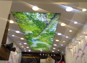 سقف ساتین : سطح این سقف صاف است و نوع آن به صورت غیر شفاف و سیقلی می باشد نور را بخوبی منعکس می کند و برای نوردهی اتاق از ال ای دی مختص آن که به اس ام دی است باید استفاده کرد
